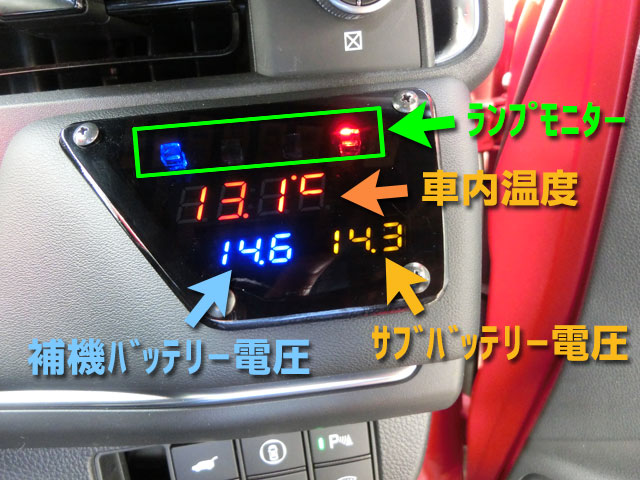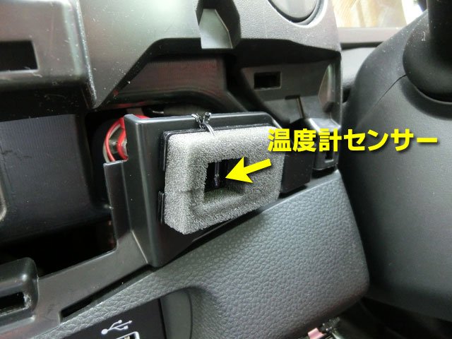 そこで、車内の温度を知るためにLED式のデジタル温度計を設置することにした。