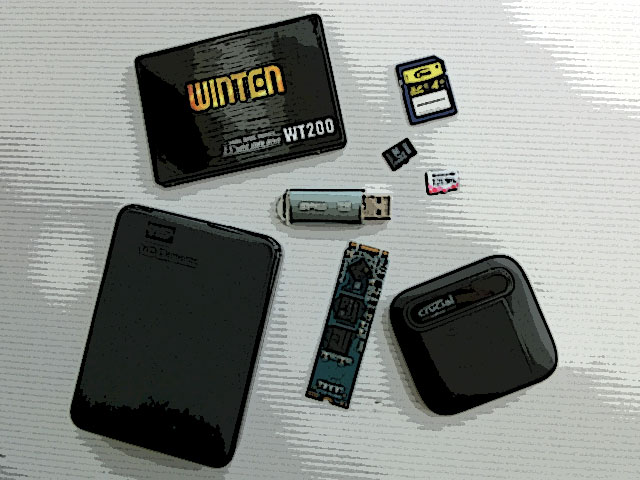 最近はHDDのみならずSSD、SDメモリ、USBメモリと多種なデータ記録メディアが使用されている。