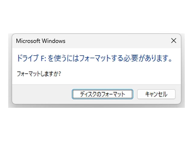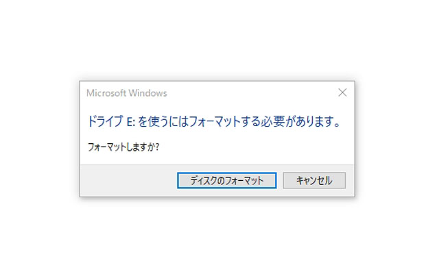 これでOSから認識できないメディアとなるため、以下のようなメッセージが表示される。