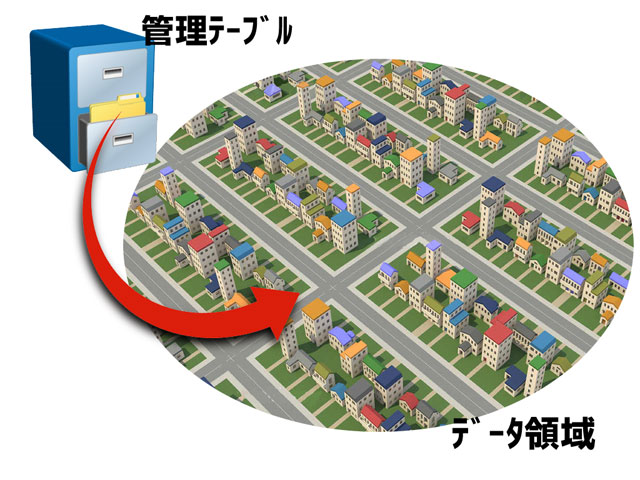 そして実際の建物や敷地が実ファイルの存在するデータ領域だ。