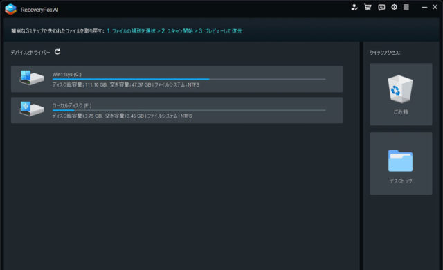 データ復旧ソフトウエア「RecoveryFox AI」を使ってみる