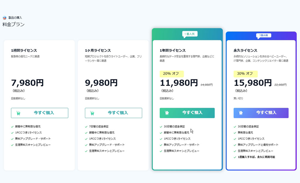 個人としてデータ復元ソフトウエアはそれほど高い頻度で使用するソフトウエアではないと思う。