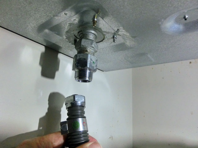 1.ガス管の弁を閉め、古いコンロよりガス管、六角ニップル(継手)を外す
