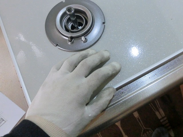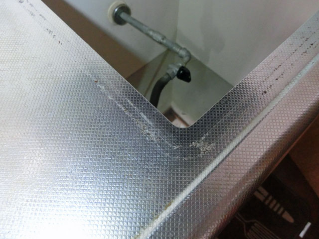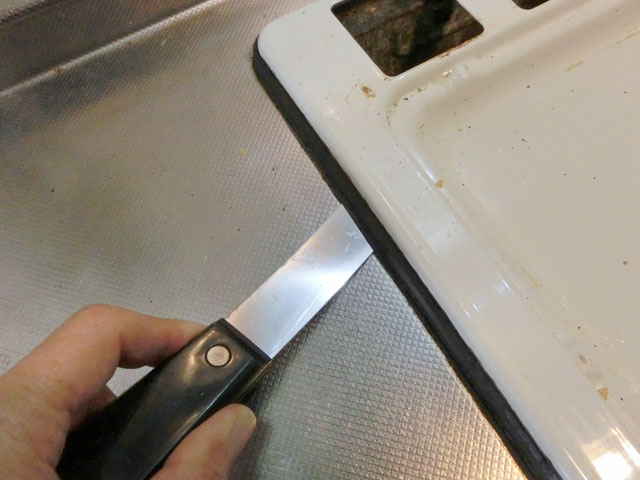 もし、天板のゴムが貼り付いている場合は、スクレーパーで剥がしてやる。
