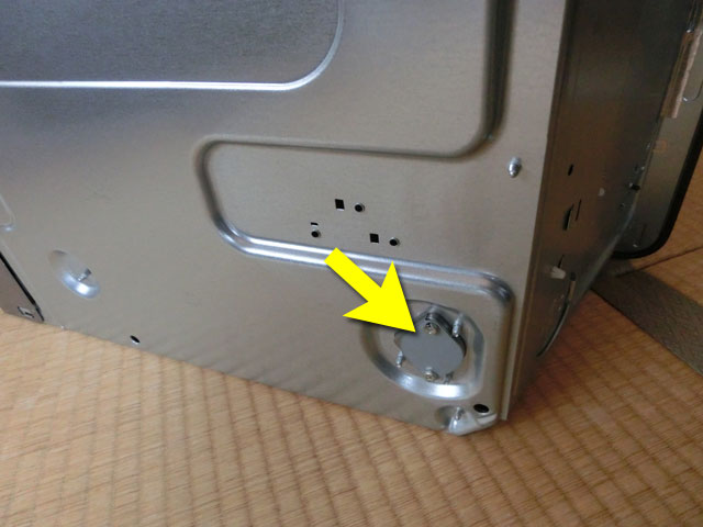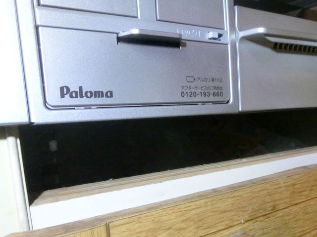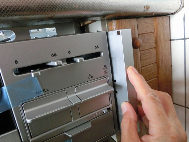 古いコンロはこの部分を塞ぐ金具があったが、今回のものには無い。