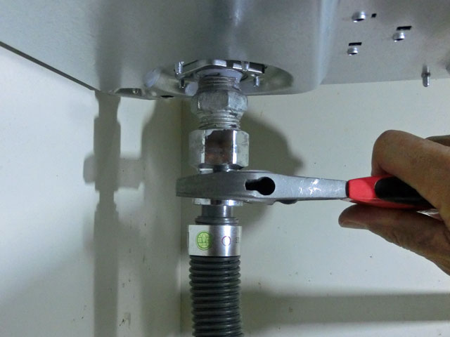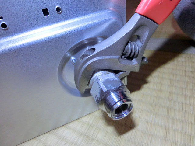 最初は手で絞めてゆき、ある程度締めたら、モンキースパナで締める。
