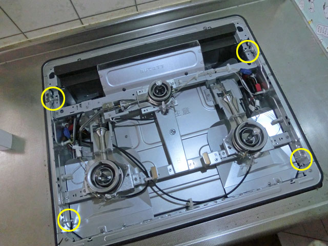 このコンロは天板の固定にスライドピンとビス留めになっている。